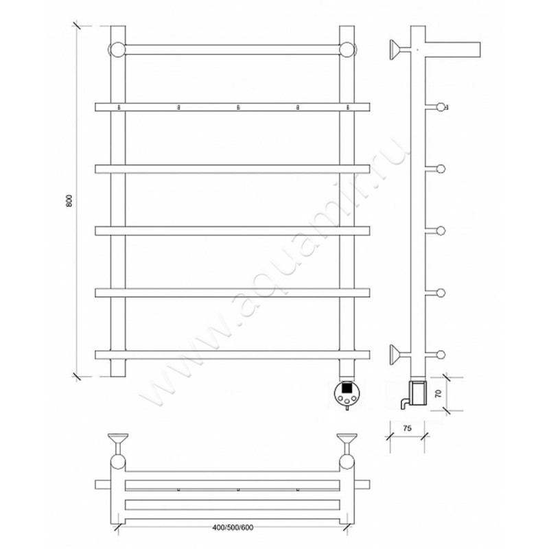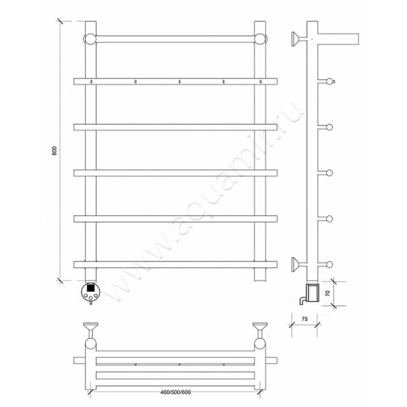 Полотенцесушитель электрический Secado Турин 1 80x60, хром, L (4603759404097)