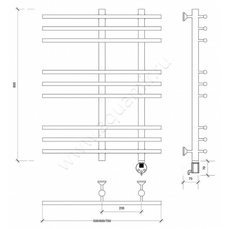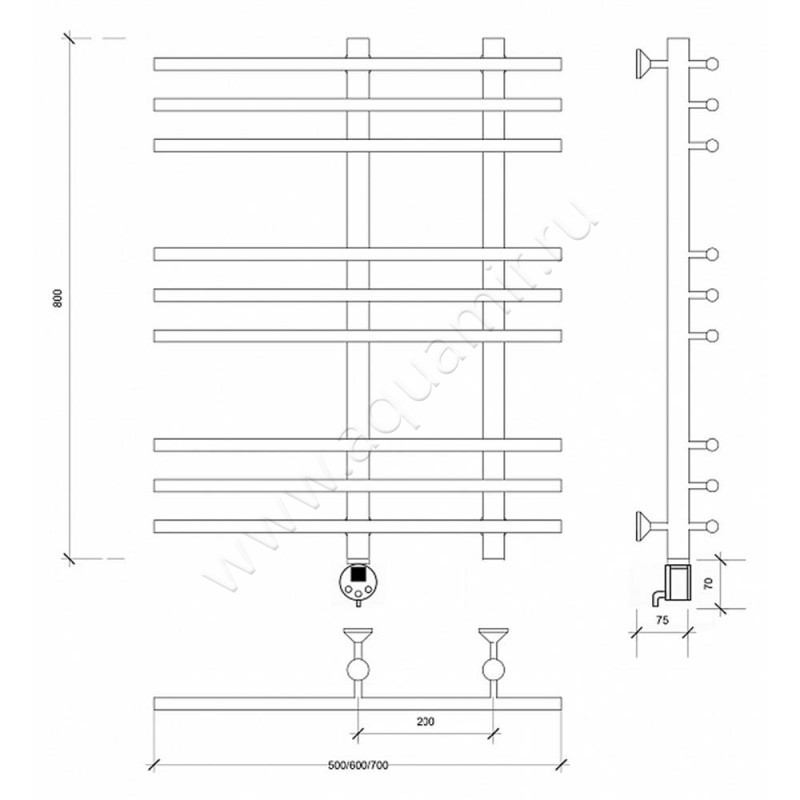 Полотенцесушитель электрический Secado Турин 3 80x60, хром, L (4603777455668)