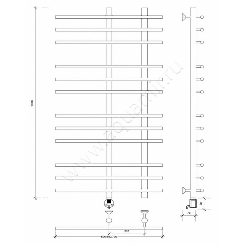 Полотенцесушитель электрический Secado Турин 3 100x60, хром, L (4603777455705)
