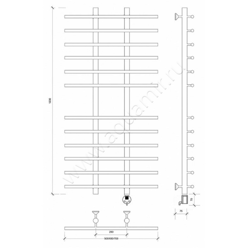 Полотенцесушитель электрический Secado Турин 4 120x50, хром, R (4603777440237)