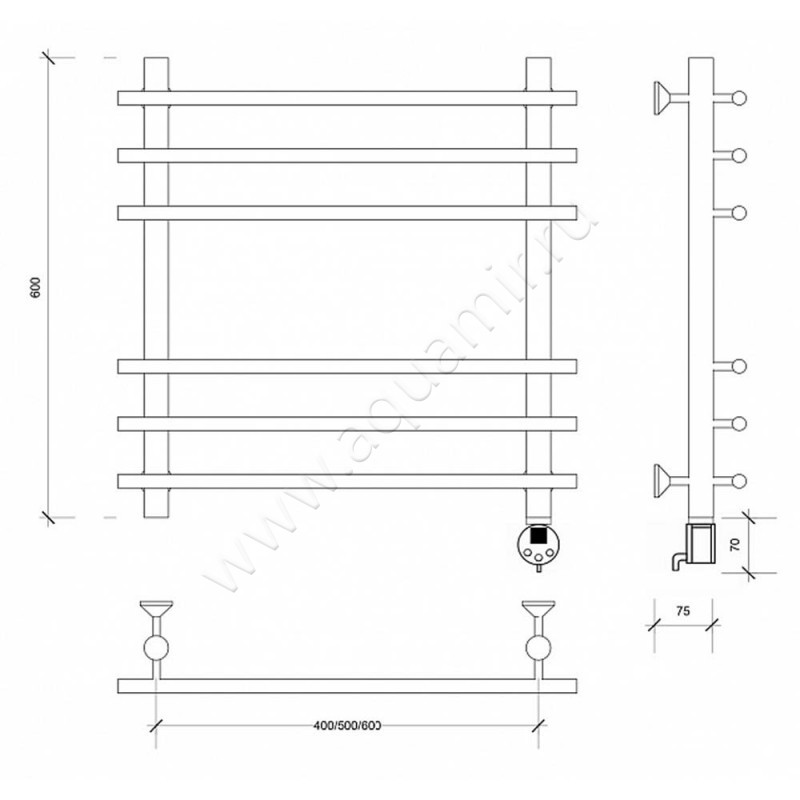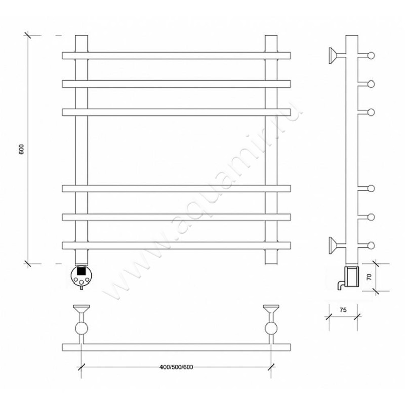 Полотенцесушитель электрический Secado Турин плюс 60x70, хром, L (4603777456283)