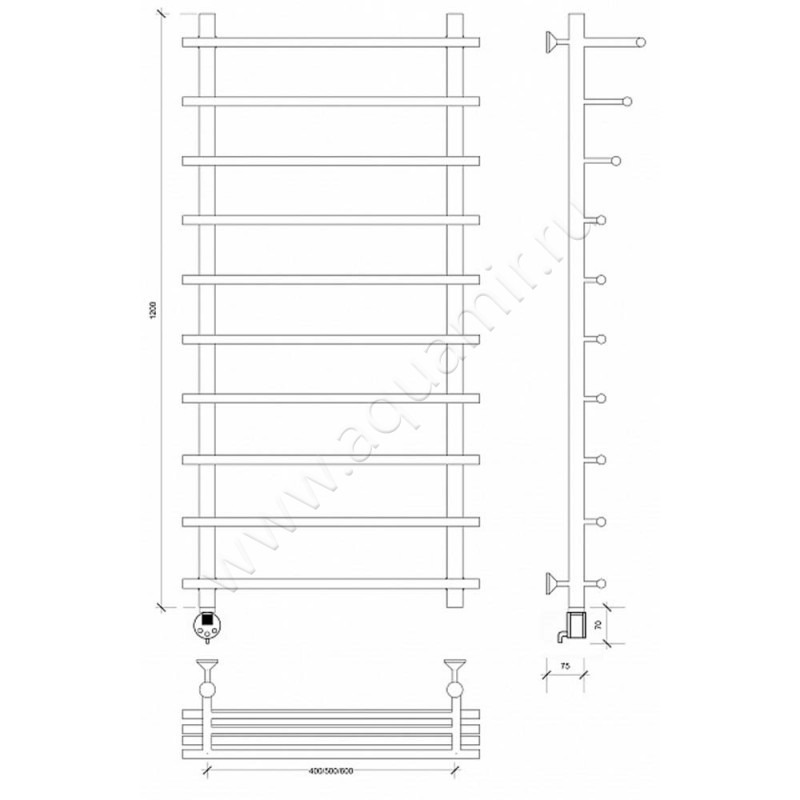 Полотенцесушитель латунный электрический Secado Турин 6 100x60, бронза, L (4673739249543)