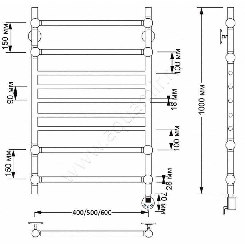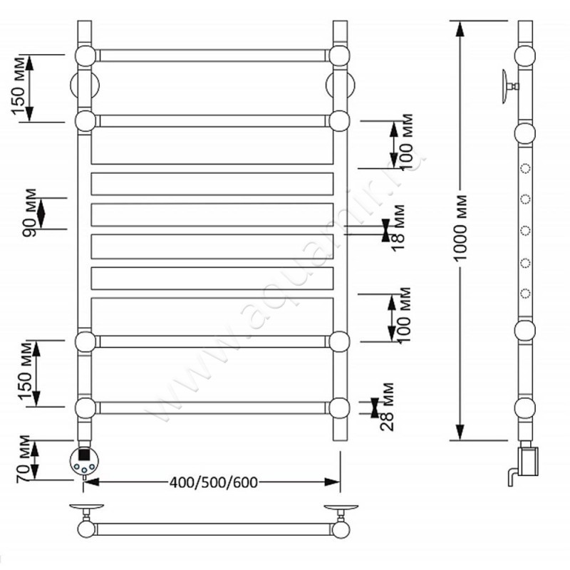 Полотенцесушитель латунный электрический Secado Флоренция 4 100x60, бронза, L (4603777465384)