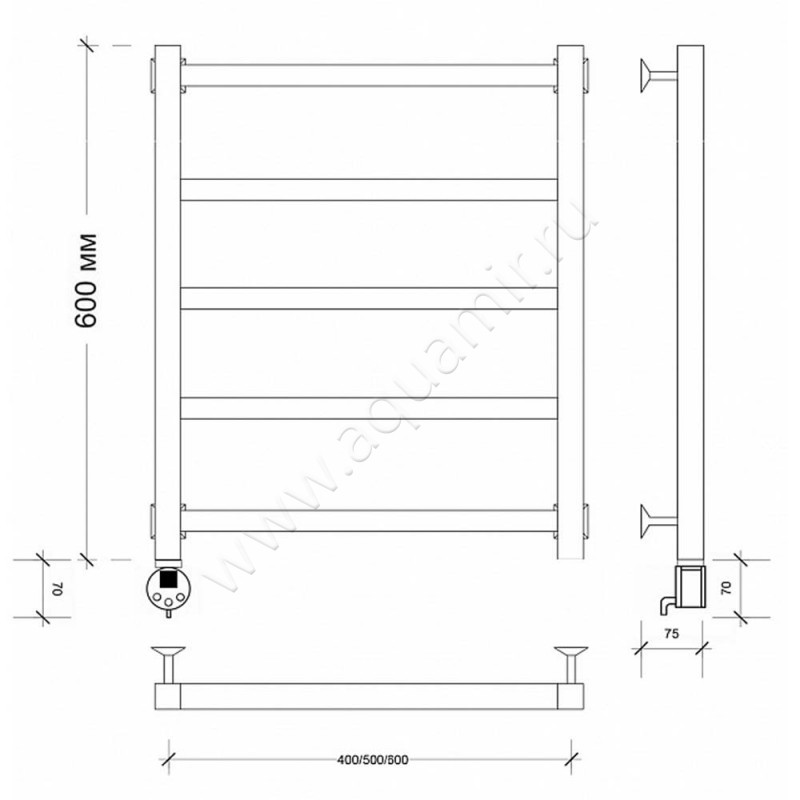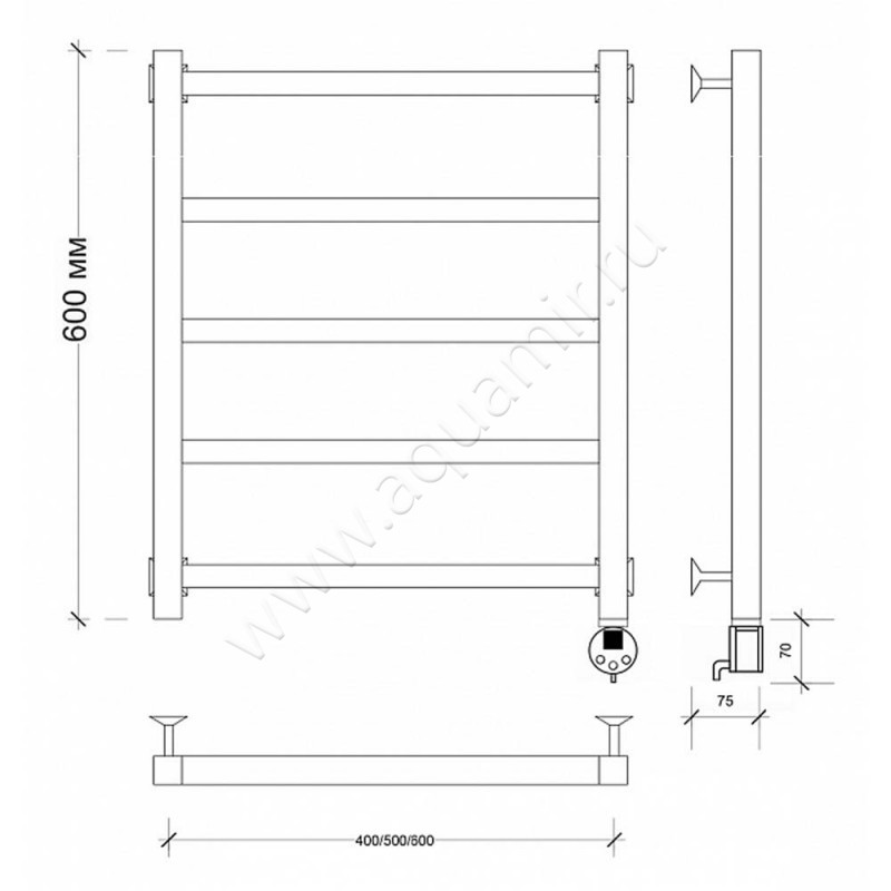 Полотенцесушитель электрический Secado Корсико 1 60x60, черный, R (4603777472702)