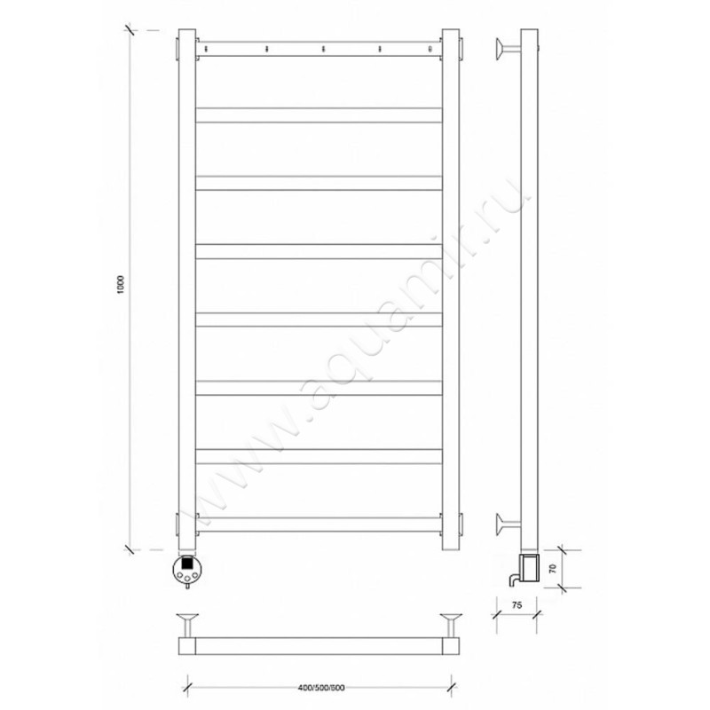Полотенцесушитель электрический Secado Корсико 1 100x50, черный, L (4603777473334)