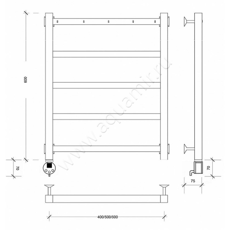 Полотенцесушитель электрический Secado Корсико 1 60x60, черный, R (4603777473402)