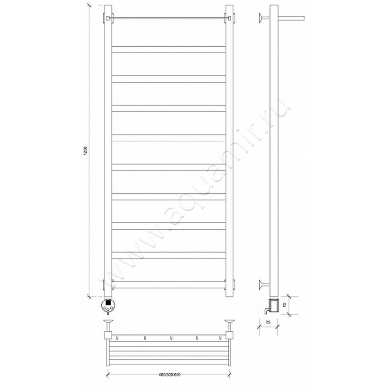 Полотенцесушитель электрический Secado Корсико 1 120x50, черный, R (4603777473952)