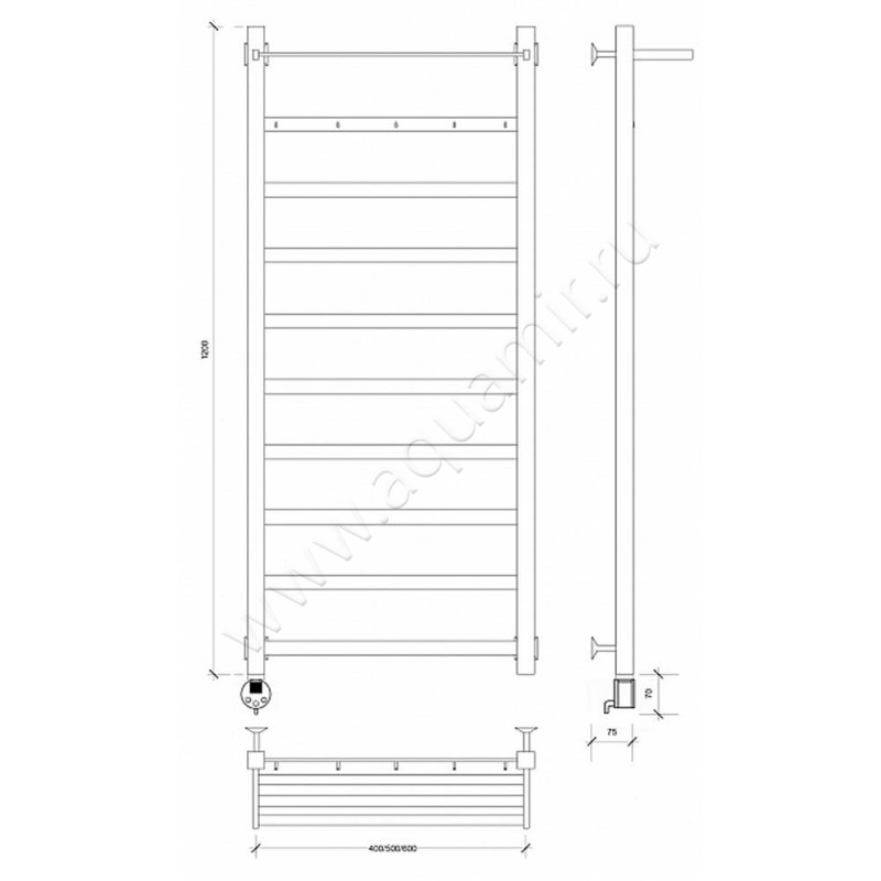 Полотенцесушитель электрический Secado Корсико 1 120x40, черный, R (4603777474119)