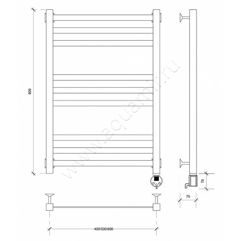Полотенцесушитель электрический Secado Корсико 3 80x60, черный, R (4603777475475)