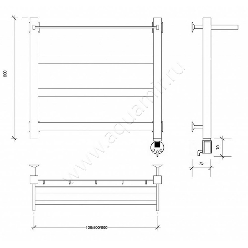 Полотенцесушитель электрический Secado Комано 1 60x50, черный, L (4603777481544)