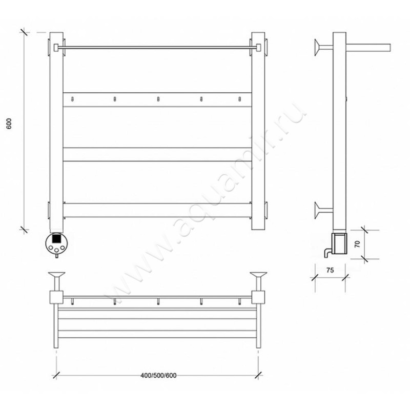 Полотенцесушитель электрический Secado Комано 1 60x50, черный, L (4603777481636)