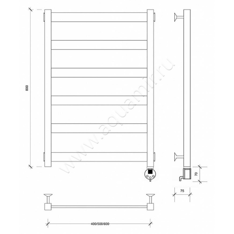 Полотенцесушитель электрический Secado Комано 2 80x50, черный, L (4603759401096)
