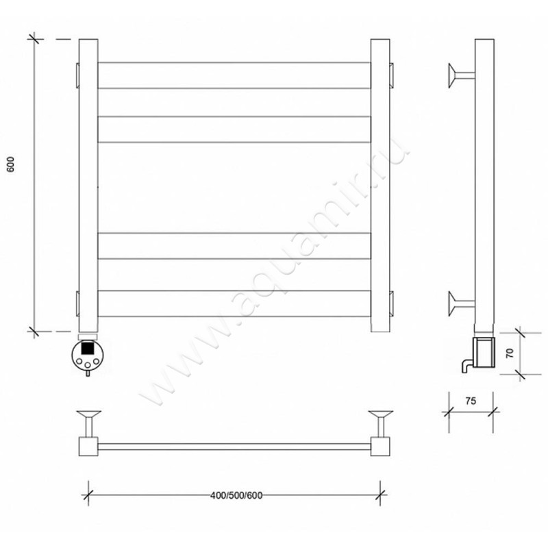 Полотенцесушитель электрический Secado Комано 3 60x50, черный, L (4603777482084)