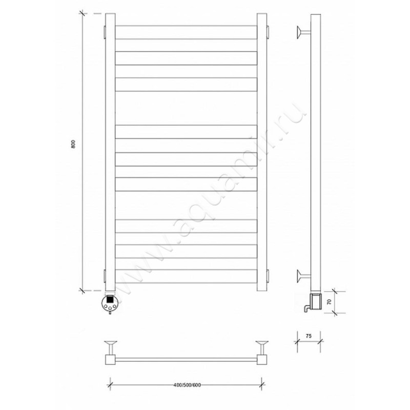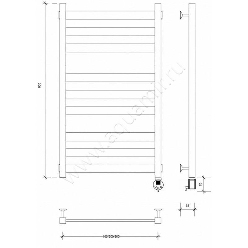 Полотенцесушитель электрический Secado Комано 3 80x50, черный, L (4603777475987)