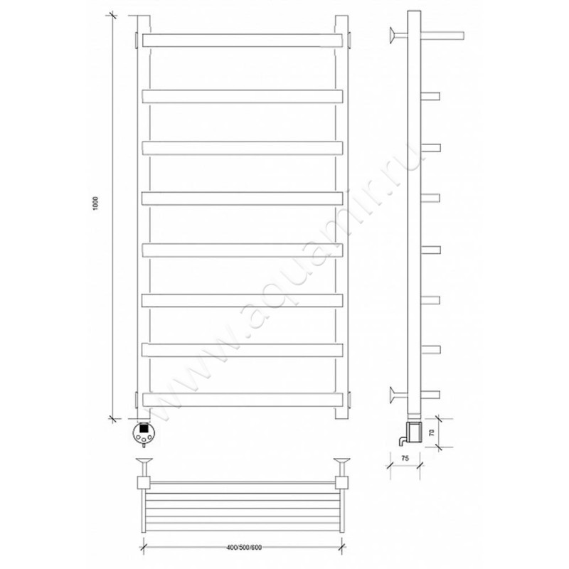 Полотенцесушитель электрический Secado Корсано 1 100x40, черный, L (4673739247396)