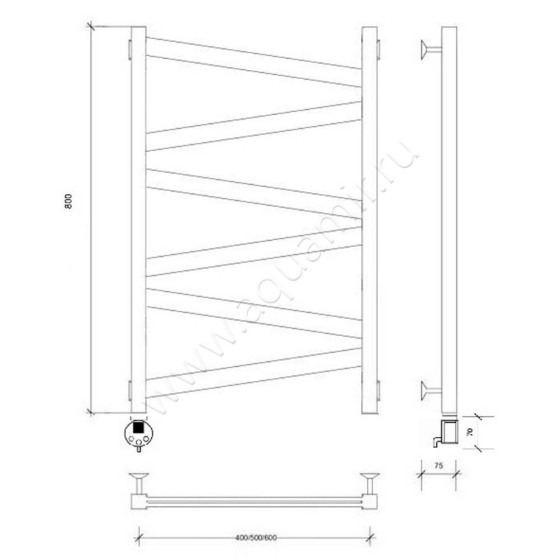 Полотенцесушитель электрический Secado Мирано плюс 80x60, черный, L (4673739247617)