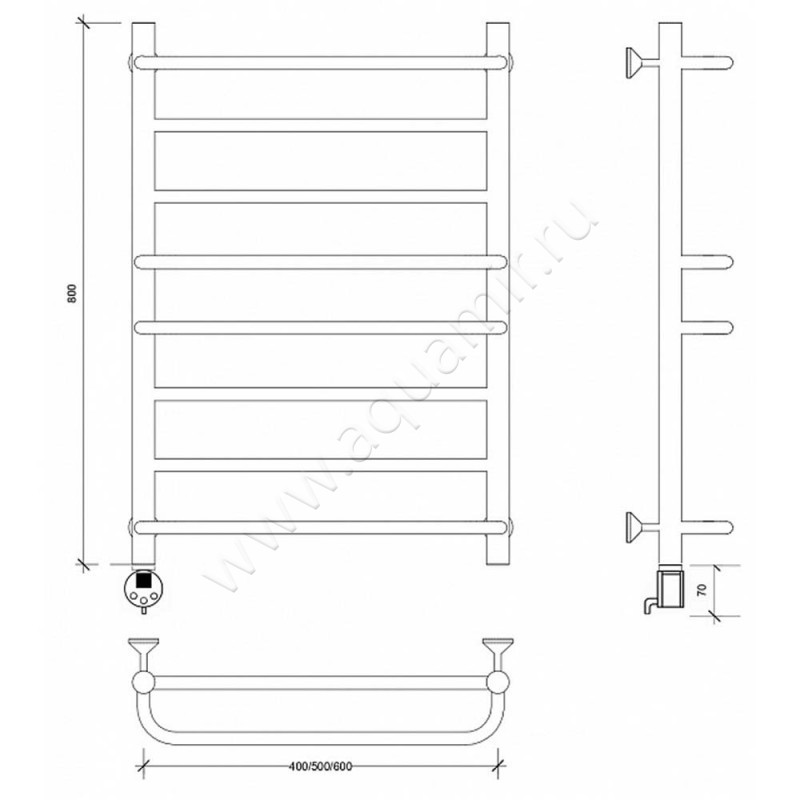Полотенцесушитель электрический Secado Модена 2 80x60, черный, L (4603777479893)