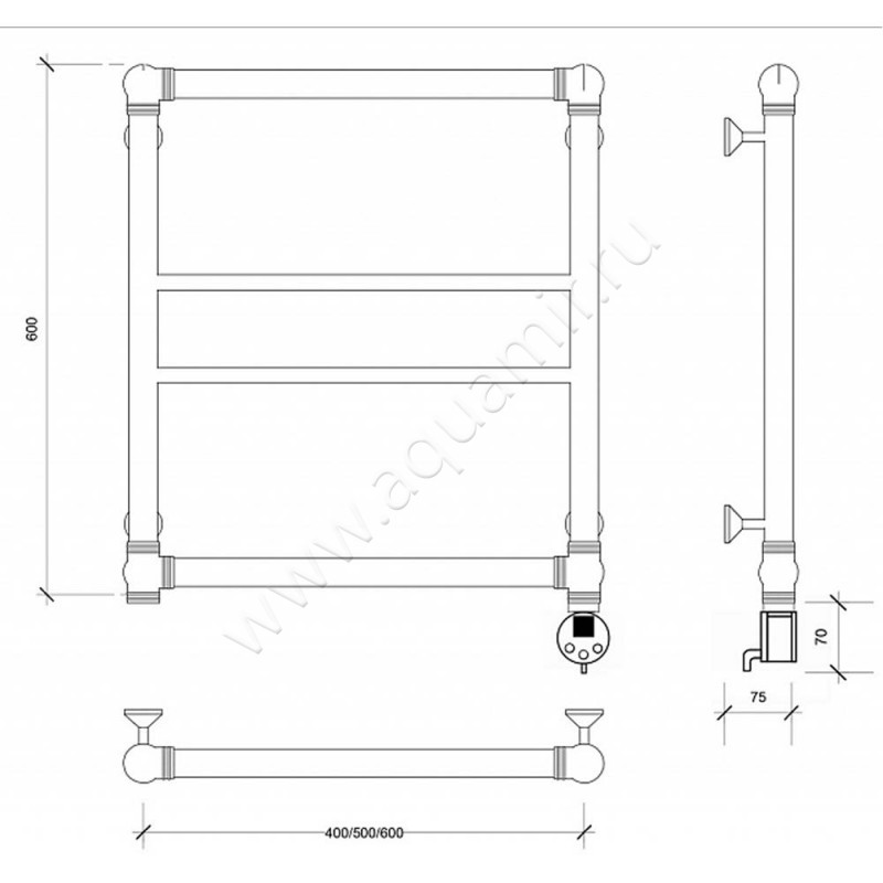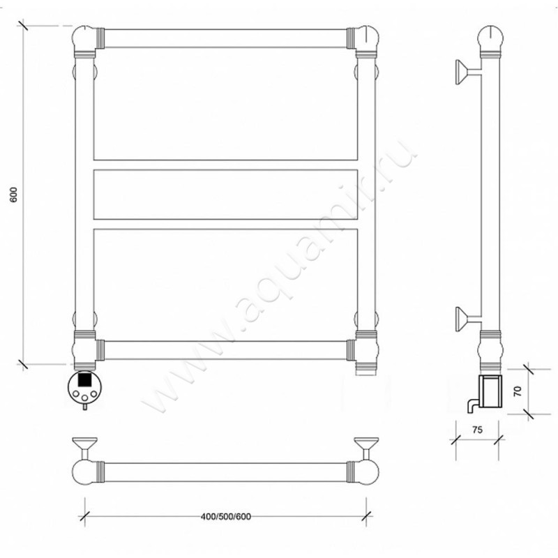Полотенцесушитель латунный электрический Secado Бароло 60x60, бронза, L (4603759404714)