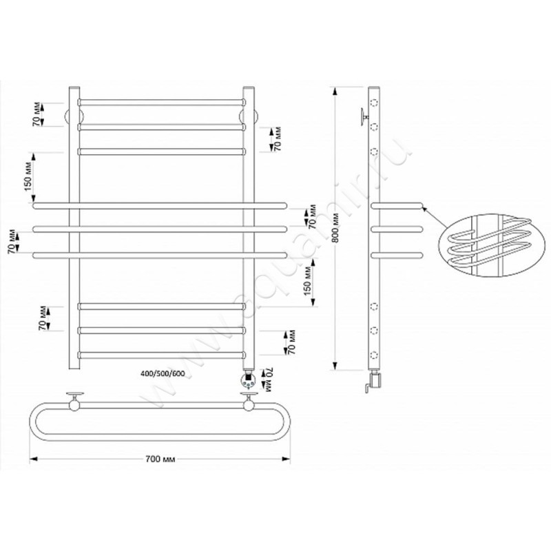 Полотенцесушитель латунный электрический Secado Палермо 80x60, бронза, L (4603777466015)