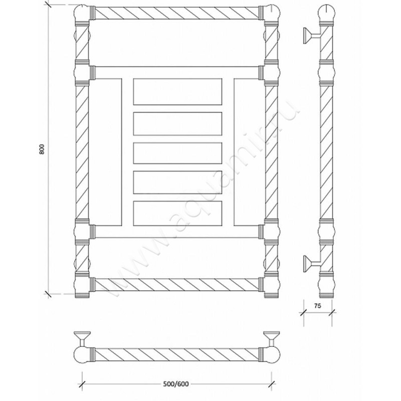 Полотенцесушитель латунный водяной Secado Фалерони 3 80x60, бронза, артикул товара 4603777460853, страна производства Россия.