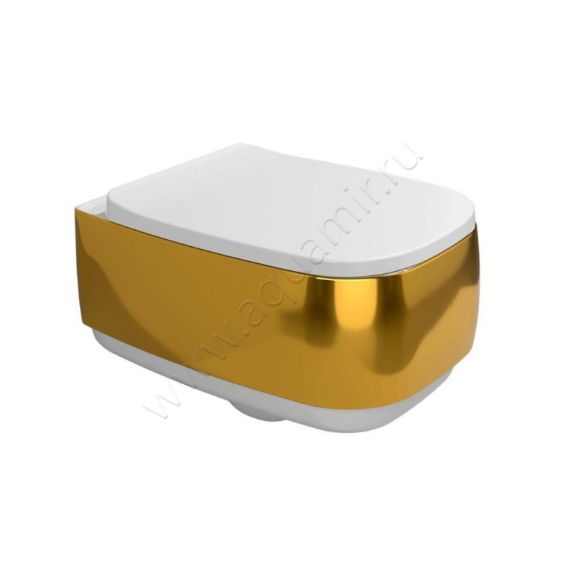 Унитаз подвесной Flaminia FLAG 54 см, безободковый, белый/золото, артикул товара FG118GOR, страна производства Италия.