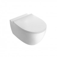 Конструкция для подвесного крепления со скрытым бачком обеспечивает гигиену и минималистичную эстетику. Скрыто в инсталляции размещен бачок, что создает ощущение простора в помещении. Горизонтальный выпуск позволяет скрыть коммуникации за облицовкой. Место вывода трубы для воды обусловлено расположением входного отверстия бачка. Чаша выполнена в формате безободкового смыва для лучшей гигиеничности. Тип смыва задается особенностями инсталляционной рамы. Овальная чаша создает впечатление мягкости и утонченного стиля.