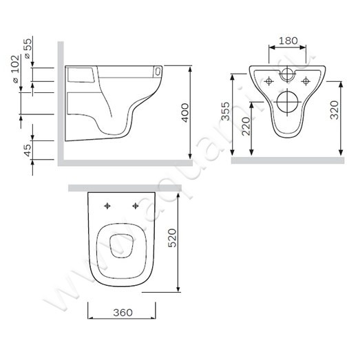 - Модель унитаза предназначена для подвешивания на стену при помощи системы инсталляции
