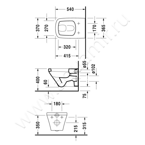 Унитаз подвесной Duravit DURASTYLE 54 см, белый (2540090000)