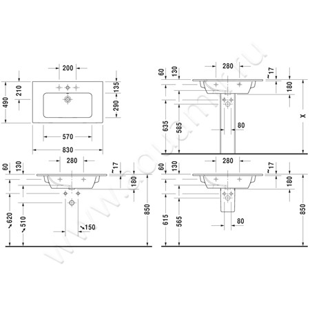 Раковина мебельная накладная Duravit ME by Starck 83 см (2336830000)