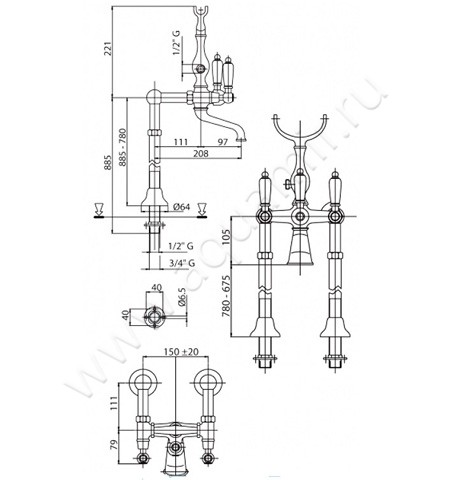 Смеситель для ванны Cezares Diamond , артикул товара DIAMOND-VDPS-03/24-Sw, страна производства Италия.
