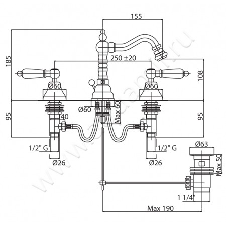 Смеситель для биде Cezares First (FIRST-BBS2-03/24-Bi)