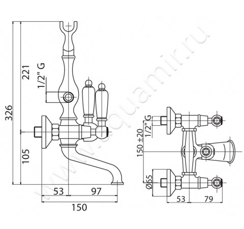 Смеситель для ванны Cezares First (FIRST-VD-02-Bi)