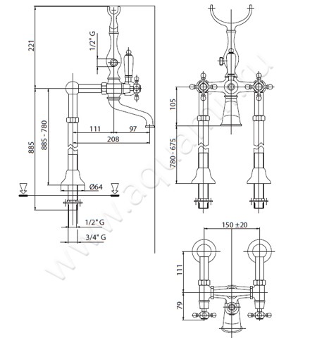 Смеситель для ванны Cezares Lord , артикул товара LORD-VDPS-02, страна производства Италия.