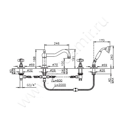 Смеситель для ванны Nicolazzi Petit Mont Blanc (1449GB78)