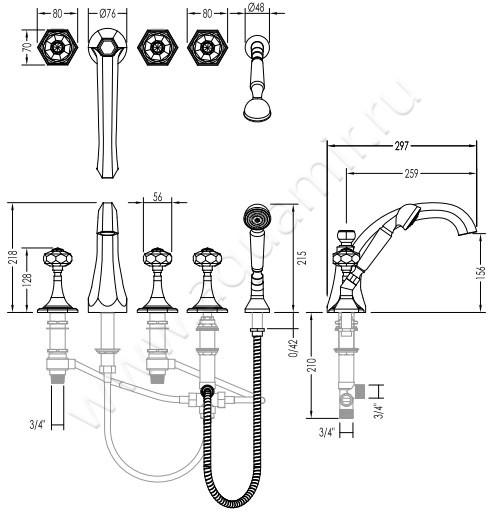 Смеситель для ванны Devon & Devon Gemstone (EXC-GM150OTS)