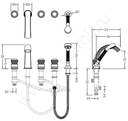 Смеситель для ванны Devon & Devon Royal (EXC-RY150CR)