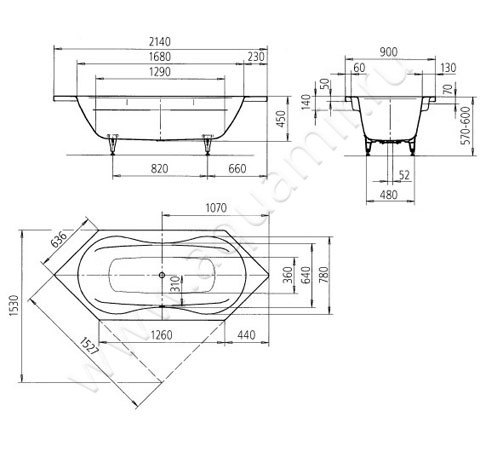 - Ручки для ванны приобретаются отдельно