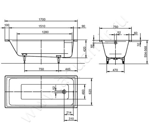 Ванна стальная Kaldewei Puro 170x75 (256200010001)