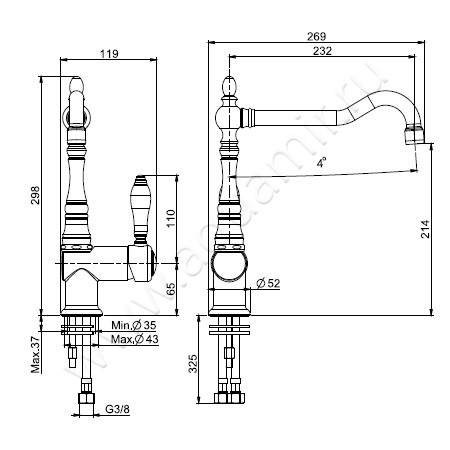- Поворотный излив