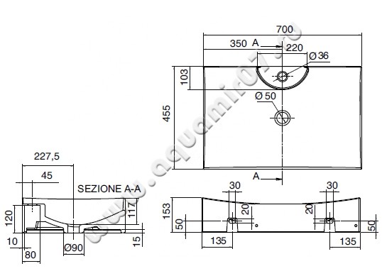 Раковина-чаша накладная с отверстием под смеситель Scarabeo Tsunami 70 см (8039R)