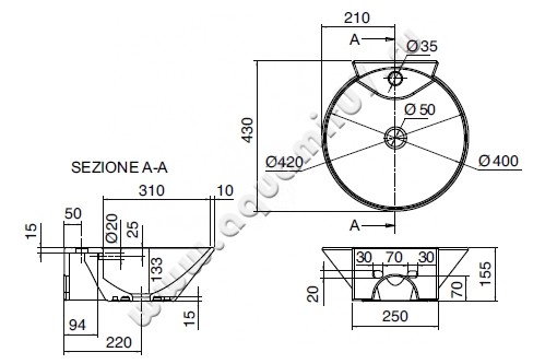 Рукомойник подвесной Scarabeo Cono 42 см (8010R)