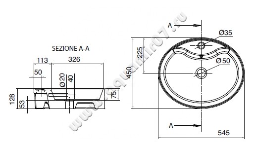 Раковина-чаша накладная с отверстием под смеситель Scarabeo Wind 54,5 см (8030R)
