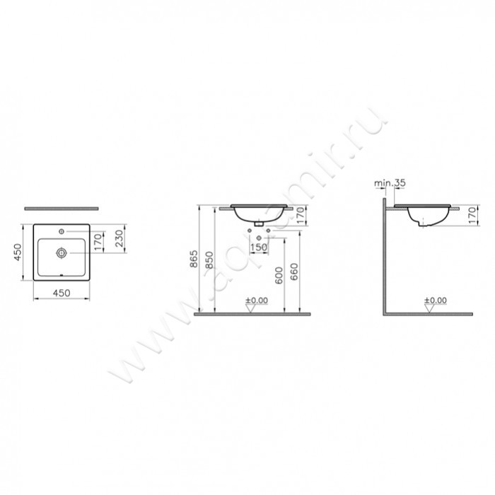 Раковина встраиваемая сверху на столешницу Vitra S20 45 см (5463B003-0001)