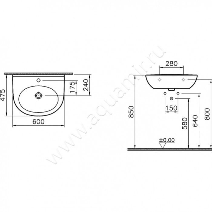 Раковина подвесная Vitra Zentrum (5786B003-0001)