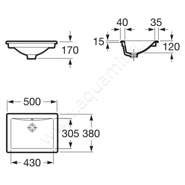 Раковина встраиваемая сверху на столешницу без отверстий Roca Diverta 50 см (7.3271.1.400.0)