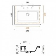 Раковина подвесная Catalano New Light 67 см, фарфор, белый глянец/bianco (167LI00)