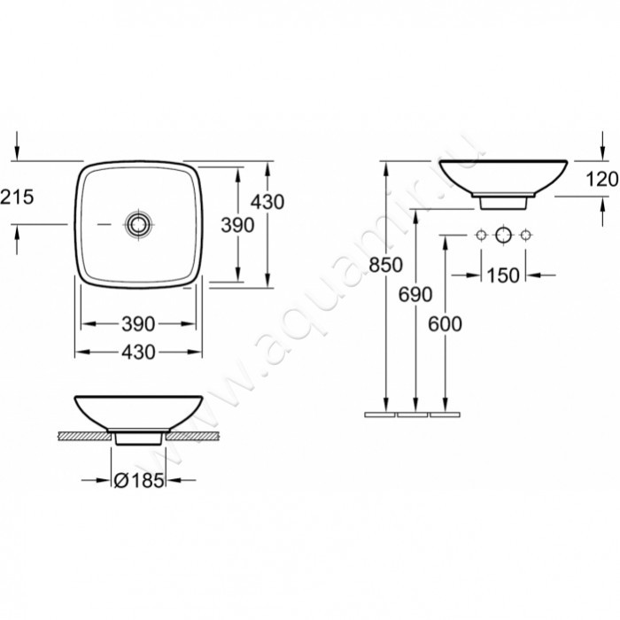 Раковина-чаша накладная Villeroy & Boch Loop & Friends 43 см, фарфор, белый глянец/white alpin (514910R1)