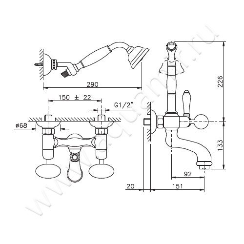 Смеситель для ванны Nicolazzi Cristallo di Rocca (2102CR09C)