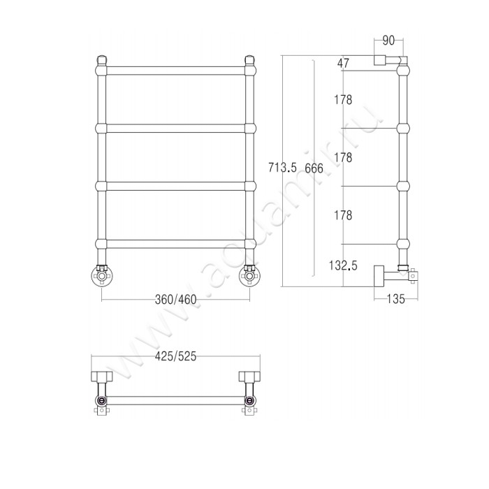 Полотенцесушитель водяной Margaroli Sole 442/TS бронза (442TS3604OB)