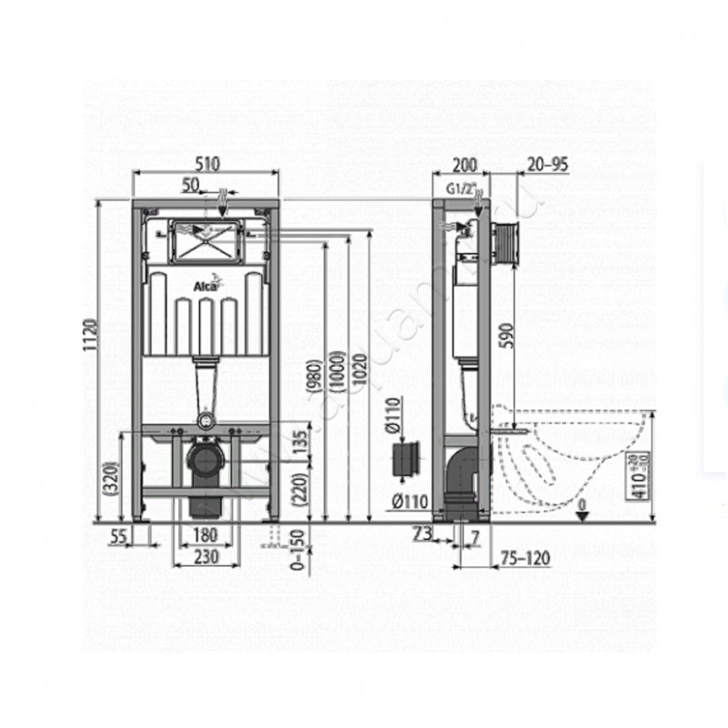 Инсталляция для подвесного унитаза AlcaPlast AM116 , артикул товара AM116/1120, страна производства Чехия.